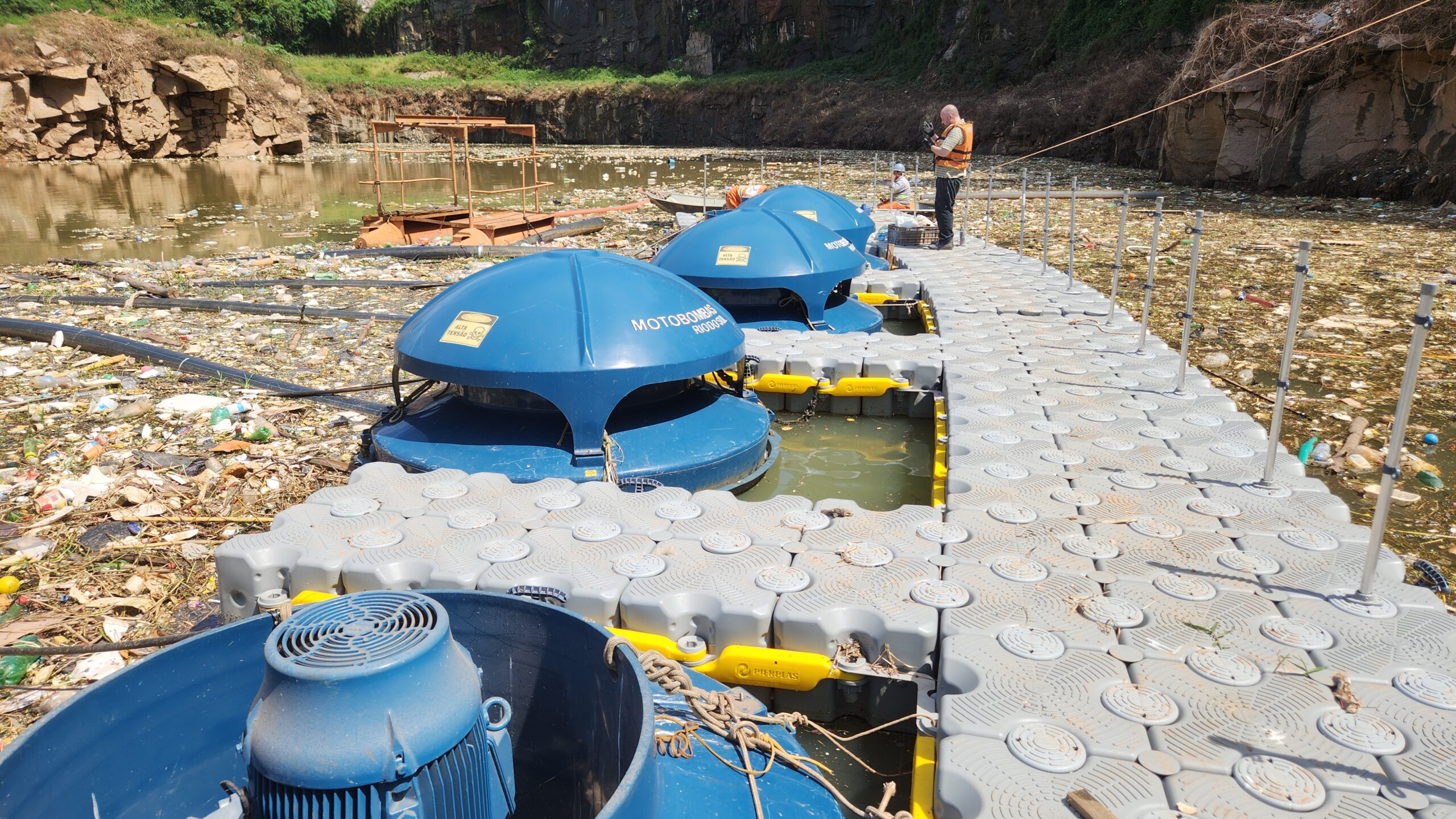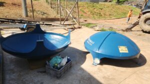 É comum vermos embarcações, cais, boias e flutuadores feitos de plástico reforçado com fibra de vidro. Desta vez, fomos chamados para restaurar algumas bombas flutuantes em um piscinão localizado em Itaquera. Com o tempo de uso, os domos dessas bombas sofreram fortes impactos contra pedras, além de apresentarem sinais de fadiga devido ao reboque inadequado, o que causou diversas avarias nos cascos.